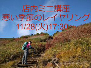 店内ミニ講座 【寒い季節のレイヤリング】 11/28(火)17:30~(30分程...