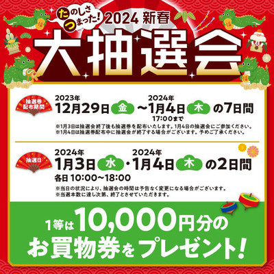 大好評だった新春 大抽選会を2024年も3日・4日で開催! 抽選券配布期間中、対...