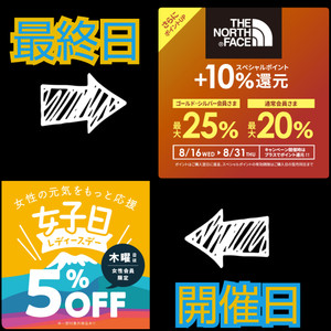 THE NORTH FACE(ザ・ノース・フェイス)10%ポイント還元率アップは本日8/31までです。