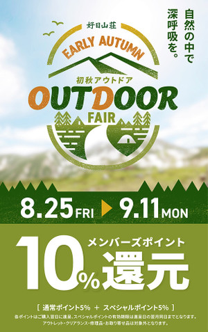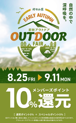 本日より「初秋 アウトドアフェア」がスタート! 好日山荘メンバーズポイントが...