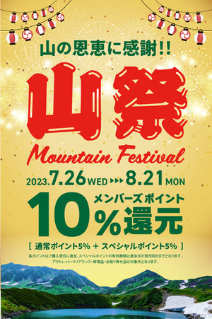 山の恩恵に感謝!!『山祭Moutain Festival』メンバーズポイント10%還元を本日7/26から8/21まで開催いたします。