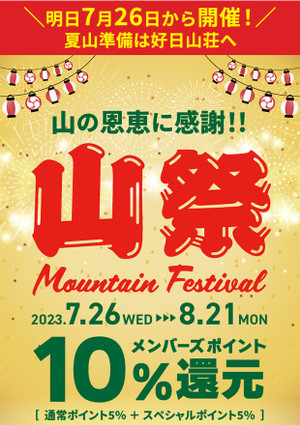 本日7月26日より8月21日まで山祭を開催いたします! 好日山荘メンバーズポイン...