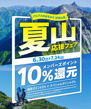 【夏山応援フェア】 ①好日山荘メンバーズポイント10%還元! 内訳【通常ポイント...