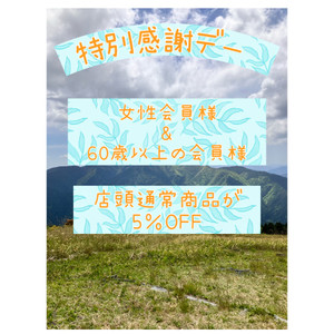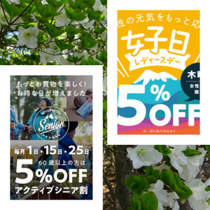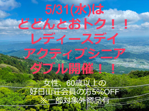 5月31(水)、6月1(木)は、アクティブシニア&レディースデイやります!5%OFFです!