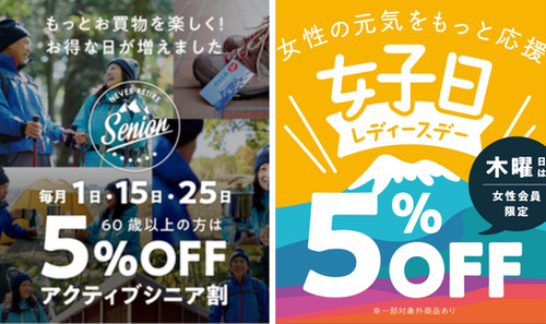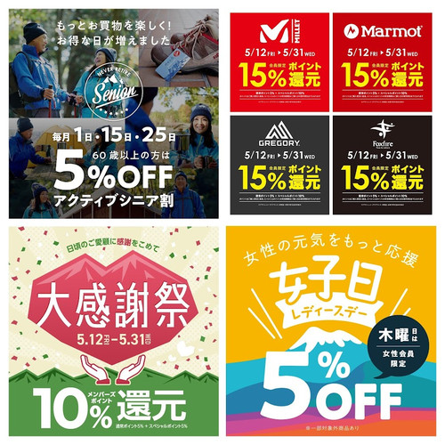 6月1日(木)は アクティブシニア&レディースデー 好日山荘メンバーズの会員様で...