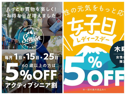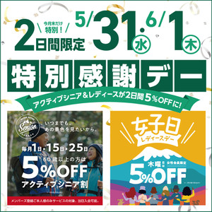 「レディースデイ」と「アクティブシニアデイ」の開催します! ①女性会員様 5%オ...