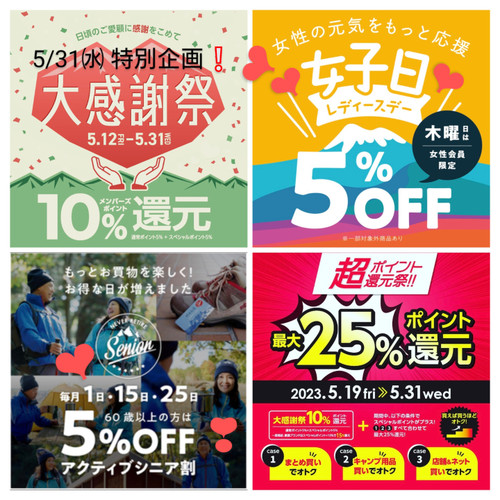 好日山荘 グランフロント大阪店 セール・キャンペーン|商品紹介|山の情報・知識
