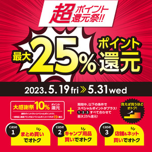 最大25%ポイント還元の「超ポイント還元祭!」「大感謝祭」も残すところあと3日と...