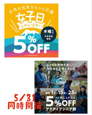 5月31日(水)は特別にアクティブシニアとレディースデーを開催します