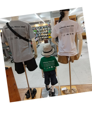 実は、右側の女性マネキンが着用しているTシャツは、キッズ(150cmサイズ)のも...