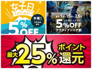 5月25日は【アクティブシニア割の日】と【レディースデー】 さらに【超ポイント還元祭】開催中につきメンバーズポイント超アップ