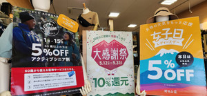 本日、5月25日(木)アクテイブシニア&レディースデイで5%OFF