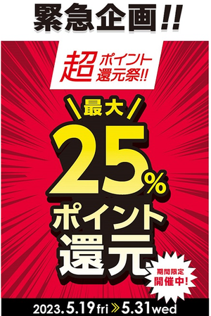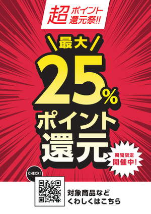 最大25%ポイント還元、超ポイント還元祭 始まりました!!