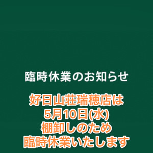 【お知らせ】好日山荘瑞穂店は本日 5月10日(水)棚卸のため終日臨時休業いたします