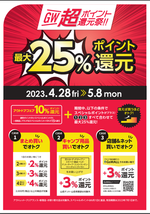 GW超ポイント還元祭!!(2023/4/28~5/8迄)
