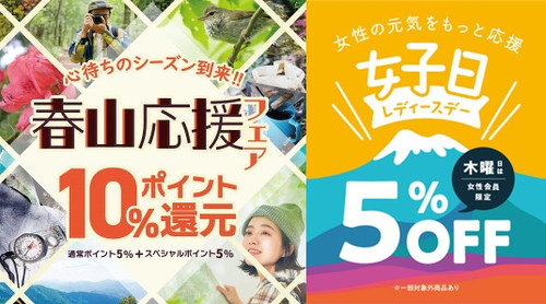 毎週木曜日は、好日山荘メンバーズ女性会員限定 通常価格品がレジにて5%OFFのレ...