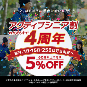 毎月1日、15日、25日はアクティブシニアデー!! 好日山荘メンバーズ会員様で6...