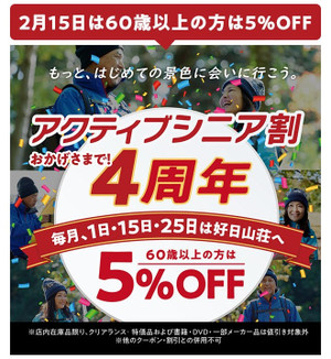 毎週木曜日はレディースデー♪ 好日山荘のメンバーズカードをお持ちのお客様...