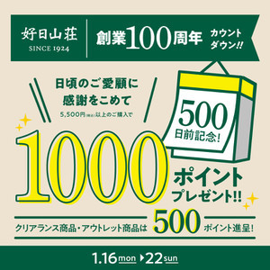 【来年は好日山荘100周年!】税込¥5,500以上の商品ご購入で最大1,000ポイント進呈!