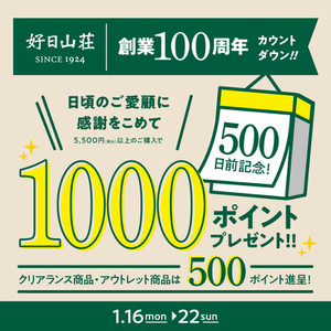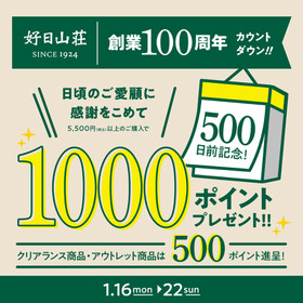 好日山荘100周年まであと500日!ポイントプレゼントキャンペーン!