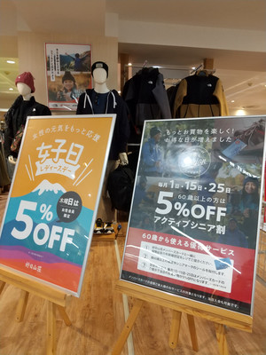 今日はお得な日!『シニア』も『レディー』も5%OFF