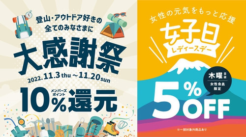 好日山荘 新潟亀田店 セール・キャンペーン|商品紹介|登山学校