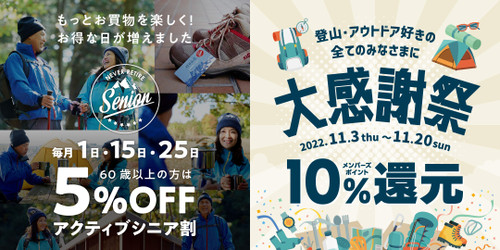 山登りを楽しむ皆さまを、好日山荘は全力で応援したい。 60歳以上の方は毎月1日・...