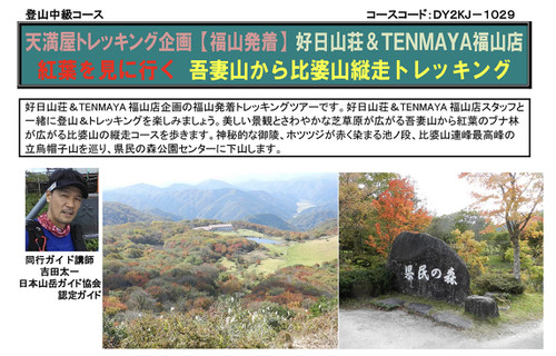 好日山荘&TENMAYA福山店企画の福山発着トレキングツアーです。 比婆山連峰の...
