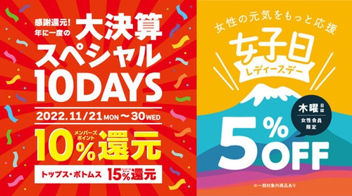 11/24(木)はレディスデー 「大決算スペシャル10DAYS」とWでお得な日!