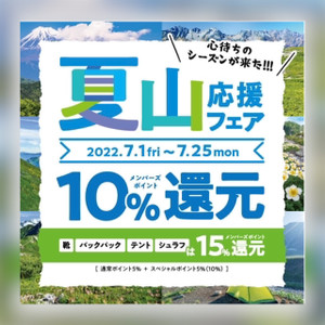 【夏山応援フェア】 ①好日山荘メンバーズポイント10%還元! 内訳【通常ポイント...