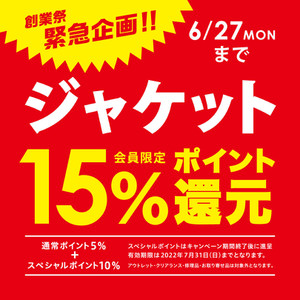 【緊急企画】ジャケット・雨具ポイント15%還元!