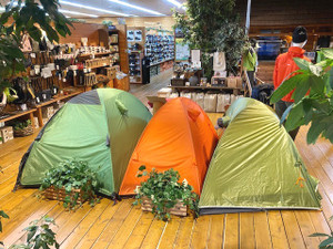 うどん県、ベースキャンプ高松店です。 ただいま、店内入口横では3つのテントを展示...