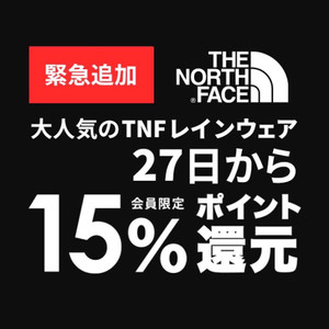 ノースフェイス雨具も15%還元!