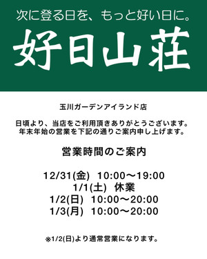 本年も好日山荘をご愛顧頂きまして 誠にありがとうございました。 来年もお客様のご...