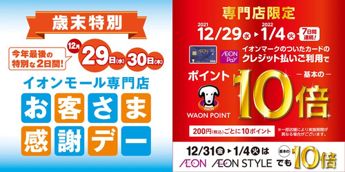 29/30日はイオン感謝ディー&WAONポイント10倍+好日山荘ポイントも10%還元でお得な日