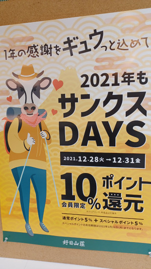2021年もサンクスDAYS & ブランド協賛 好日山荘ポイントUP!