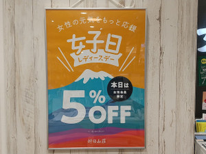 本日はレディースDAYです! 女性会員様は5%引きの日! さらに!! 只今好日山...