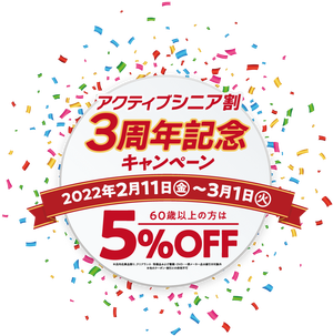 【アクティブシニア割3周年記念キャンペーン】 と題しまして ・ 2022年2月1...