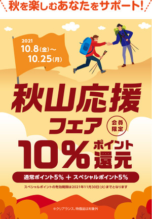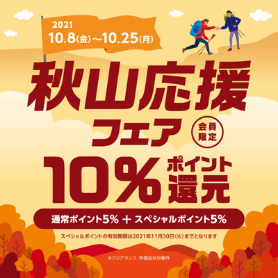 10/8(金)~10/25(月)秋山応援フェアスタート!メンバーズポイント10%還元!