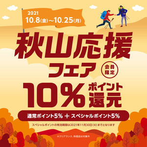 秋山応援フェア!!ポイント還元が10〜15%にアップします。