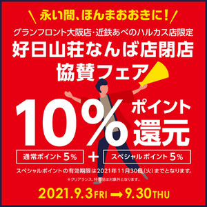 なんば店閉店協賛フェアは9月30日(木)が最終日 お得に商...