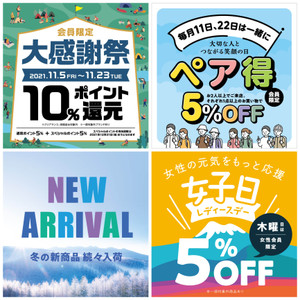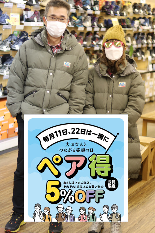 毎月22日、11日はペア得!! 【毎月11日、22日はペア得】 ●好日山荘会員様...
