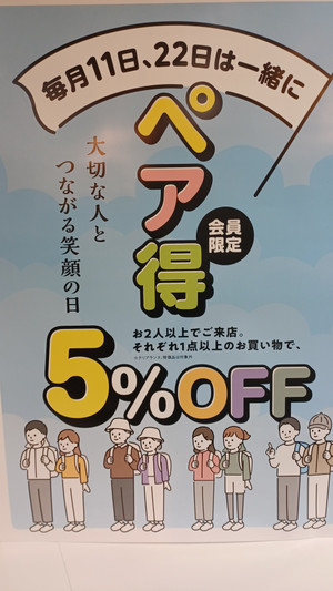 11日はペア得開催! 好日山荘メンバーズカード会員様限定! お二人以上でご来店、...