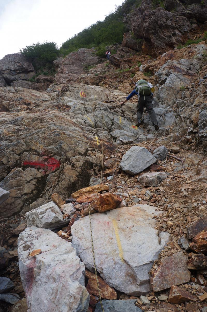 柏原新道:落石注意個所あり。下りが続くので、トレッキングポールがあると◎