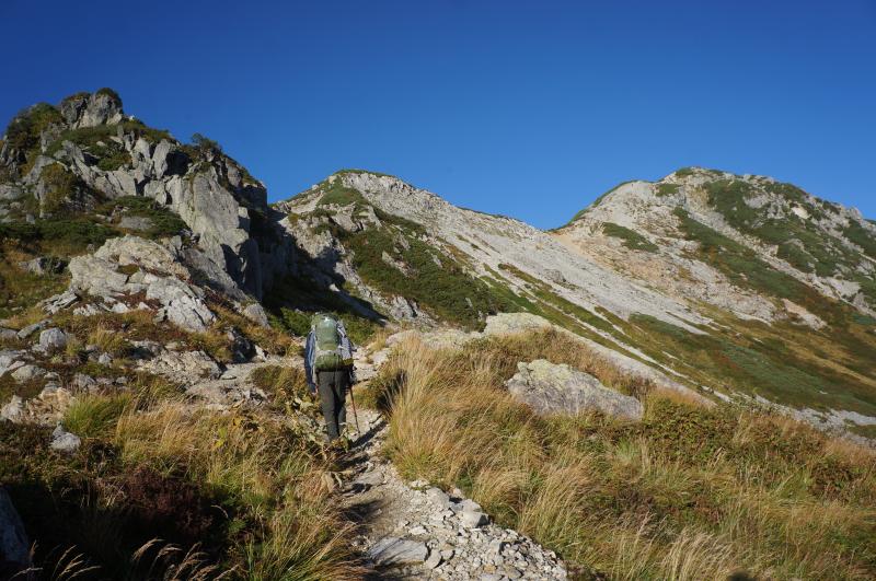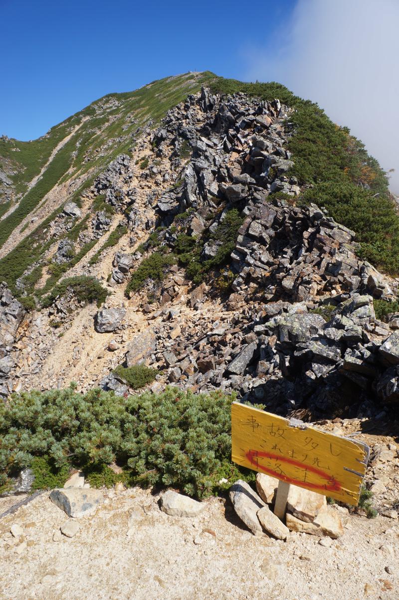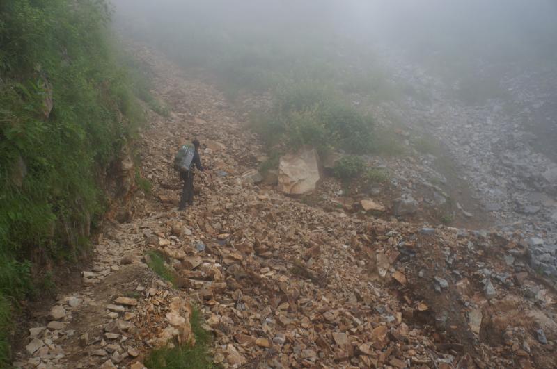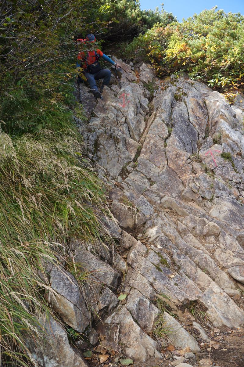 鳴沢岳~新越山荘:下りが急。不安定な足場もあり。