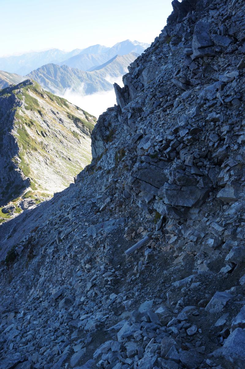 針ノ木岳~スバリ岳:針ノ木岳直下がザレ&ガレ場の下り。滑りやすいので注意