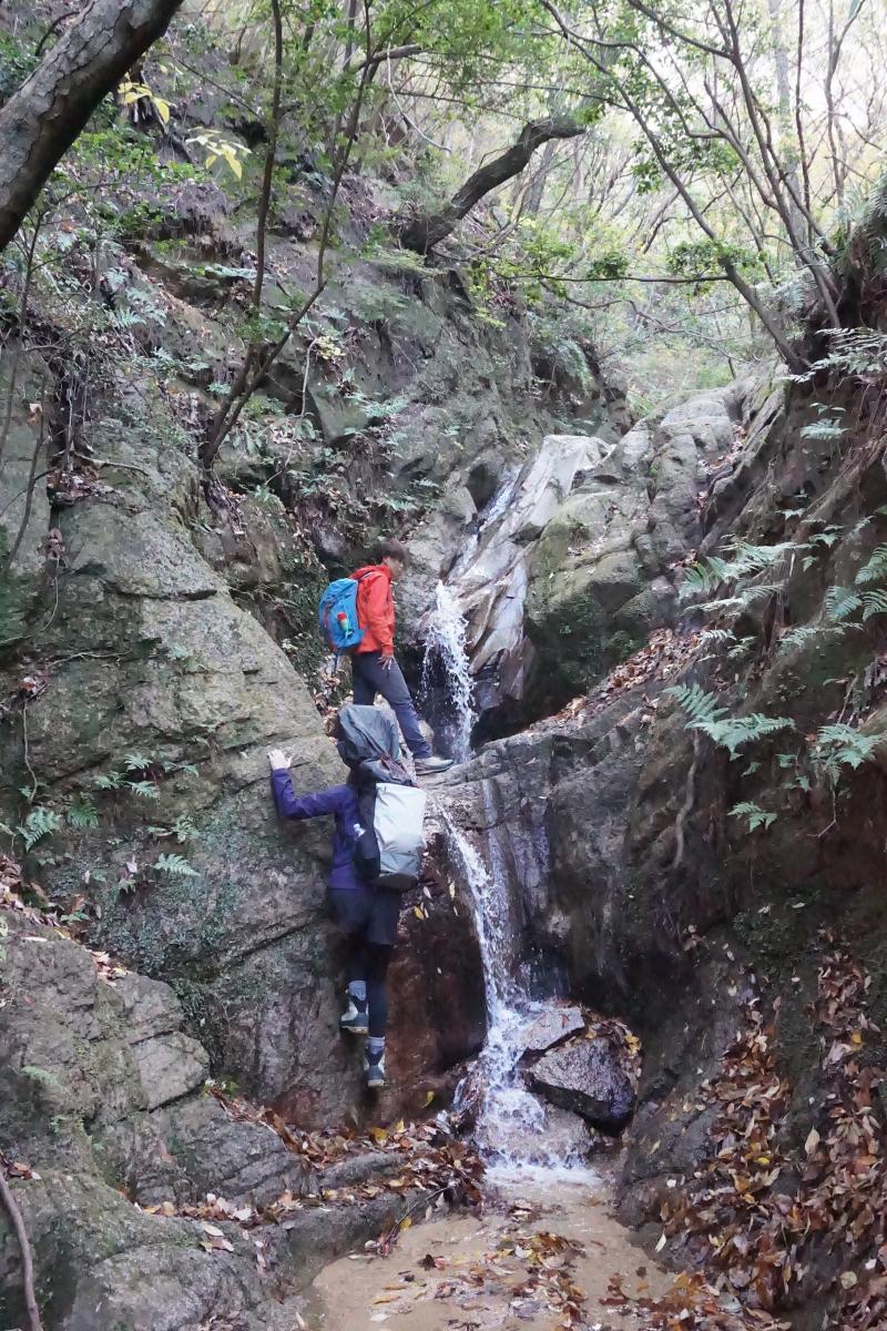 合計8つ程の小さな沢を遡行して行くのですが、3~4m位の滝を直登する箇所も出てきます。