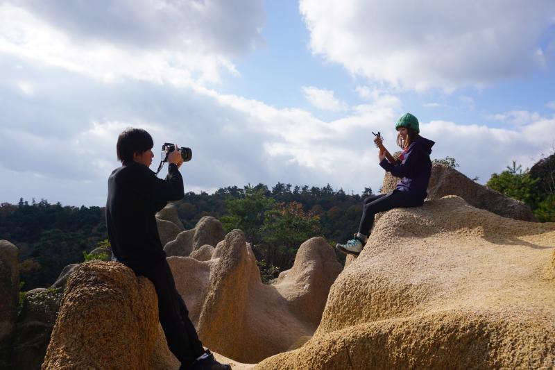 早速、はつみさんが花崗岩に腰かけて唄う。