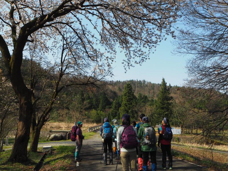 昨日雨が降りましたが、当日は桜がちょうど満開を迎え絶好のお花見&登山日和。ピザ生地を仕込み下準備を済ませ早速出発、せっかくなので登山口まで散歩がてら電気山道を歩きました。ここでは大きなヒキガエルやサンショウウオの卵を発見し、そのキモ可愛さに皆さん様々な奇声をあげていました。