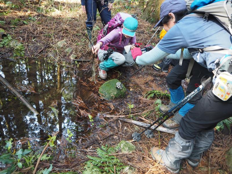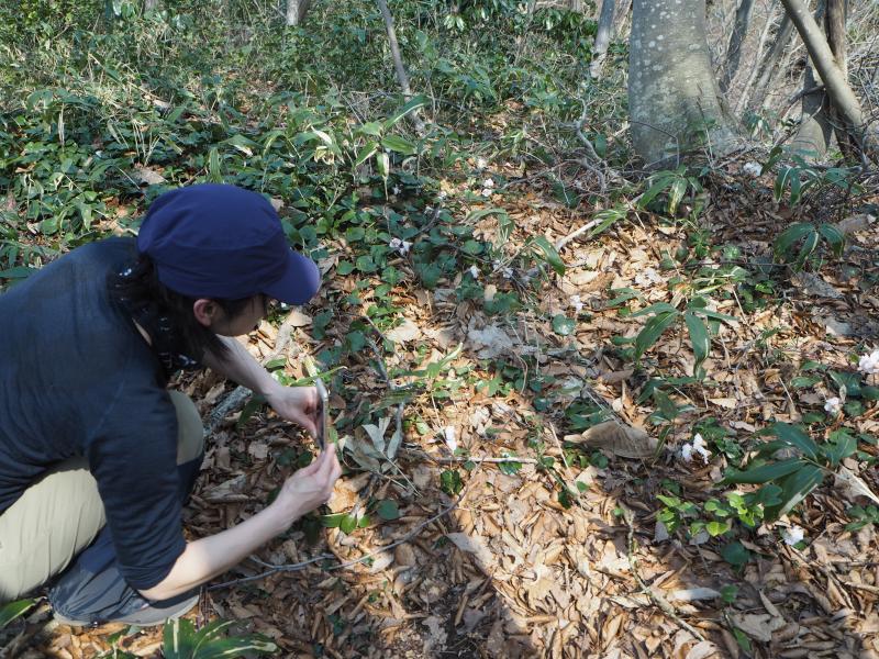 木曜日に下見に来た時とは打って代わって汗ばむ陽気、登山道も雪解けが進み歩きやすくなっていました。さらに春のお花が増えていて、特にイワウチワの群生は見応えがあり、皆さん夢中になってカメラに収めていました。